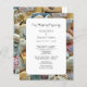 Kleine Hochzeitsfeier am Strand. Hübsche Muscheln bedecken den Rand und die gesamte Rückseite dieser leicht zu bedienenden Vorlage. Fügen Sie Ihren eigenen Text für eine Hochzeit am Meer hinzu.