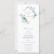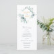 Ein wunderschönes, blumengeschmücktes Hochzeitsprogramm mit lila und blauen Blumen.