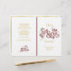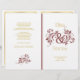 Marsala Ampersand und Blätter Blumenblatt Blumenzeremonie und Party-Programm mit Ampersand und blühte verzierte Blätter in Marsala Farbe und Goldtext. Dieses elegante, moderne und dennoch klassische Hochzeitsdesign mit Vintagen Elementen ist Teil eines Hochzeitsgeschehens oder einer Hochzeitskollektion. Es ist ein vollständig anpassbares Template und ist ideal für eine formelle oder lässige Hochzeit. Man muss es in der Mitte falten. Wählen Sie nur diesen Papierwert aus, da er sich gut faltet.