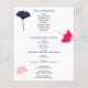 Erstellen Sie ein mutiges und elegantes Programm für Ihre Hochzeit. Machen Sie eine Aussage mit fett Farben und eine saubere und einfache Grafik. Hier finden Sie Abbildungen von ginkgo Blätter in marineblau, hellrot rosa und hellkorallengefärbtes Magenta.