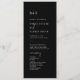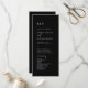 Dieses elegante, schwarz-schwarze Hochzeitsprogramm ist perfekt für eine einfache Hochzeit. Das minimale boho Design bietet rustikale einzigartige und stilvolle böhmische Typografie in einem raffinierten und moody dunkelschwarz. Geben Sie den Namen der Braut und des Bräutigams, das Datum und den Ort der Hochzeit, Dankeschön-Nachricht, Dienstordnung, Brautparty und ein optionales "in Loving Memorial" ein.