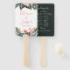 Schönes und modernes tropisches Grün und korallenrosa Blumenarrangements, Hochzeitsfeier von Hand Fans. Zurück mit solidem dunklem Dschungelgrün Hintergrund und Textzeilen für eine detaillierte Liste der Hochzeitsfeier. Entworfen, um unsere Modern Tropics Collection zu entsprechen.