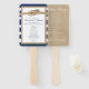 Das perfekte Hochzeitsprogramm und ein handgeführter Fan für eine Hochzeit oder eine Veranstaltung zum Thema Wassersport. Dieses Produkt ist mit einem marineblau-blau gestreiften Hintergrund mit einem Seil in einem nautischen Knoten verbunden. Eingerahmt von einer Einbruchstruktur. Die perfekte Mischung aus zeitlosem nautischen Stil und rustikalen modernen Akzenten.