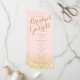 Rosa und goldfarbene, glänzende Tinkle-Leuchten gestalten bedruckte Rack-Karten Hochzeitsprogramme mit goldenem Text.