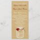 rote Rose auf einem rustikalen, Shabby Chic Land Maurer Glas auf IMITATEN weiße Spitzen und Bruch-Backen Hochzeitsfeiern. Elegant und stilvoll für eine Hochzeit auf dem Land oder eine Hochzeit auf dem Bauernhof, ideal für jede Hochzeit im Freien. Auch passende Produkte sind erhältlich.