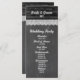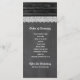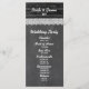 Dieses schöne Vintage Hochzeitsprogramm im Landhausstil hat eine einfache Vorlage, die es Ihnen ermöglicht, die Hochzeitsfeier auf der einen Seite und die Reihenfolge der Zeremonie auf der anderen Seite zu füllen. Hintergrund aus schwarzem Holz oder Tafel, weiße Vintage Spitzen (alle bedruckt auf dem Produkt). Klicken Sie auf die Schaltfläche Anpassen, wenn Sie etwas ändern möchten.