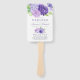 Wasserfarbene Blumen Hochzeitsprogramm Fans mit der Farbe des Jahres 2018 ultra violett mit Schattierungen von lila und schluckgrünen Akzenten. Zu den Blume zählen Hydrangea, Lavendel, Pfannenbäume und Rose.