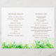 Doppelseitige, abstrakte Aquarellfarben platsche Kunst auf einem weißen Hintergrund Hochzeitsprogramme. Bearbeiten Sie diese Hochzeitsprogramme mit Ihrem eigenen Namen, Terminen, Zeremoniell, Begleitern von Hochzeitsfeiern und vielen Dank. Einfaches und dennoch elegantes Programm ersetzt einfach den Sample-Text durch Ihre Hochzeitsinformationen und faltet die Programme bei Lieferung in der Mitte. Hochzeitsfeier im Grünen mit modernem Grün. © Original painting and design by Sarah Trett. www.sarahtrett.com für www.mylittleedenweddings.com