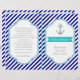 Marineblau, weiße Streifen und Anker Wasserblau Hochzeit gefaltet Hochzeit Zeremonie und Party oder Empfang Programm. Stilvoll gestreiftes Muster mit marineblau, weiß diagonalen Streifen, Anker mit einem aquablauen Herz und Seil, grau-weiß in einem Rahmen mit türkisfarbenem Banner. Zeitgenössisch und dennoch mit einem Vintagen Blick in gewisser Weise. Sie können Hintergrund und Textfarbe aus dem Zazzle Farbdiagramm ändern. Dieses elegante Design ist ein vollständig anpassbares Template und ist Teil eines Hochzeitszimmers, das für eine Hochzeitsfeier im Sommer oder eine Hochzeitsfeier am Strand geeignet ist. Man muss es in der Mitte falten. Wählen Sie nur diesen Papierwert aus, da er sich gut faltet.