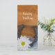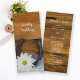 Geben Sie Ihren Gästen die Reihenfolge Ihrer Nuptials mit dem bezaubernden White Daisy and Horseshoe Country Wedding Program an Ihrem informellen und eleganten Bauernhof oder Ranch Stil Hochzeit Zeremonie und Empfang. Dieses rustikale, schicke und eigens für Pferde konzipierte Hochzeitsprogramm zeigt ein malerisches Blumenfoto mit einer weißen Blüte aus dunkler Blume, rostigem Hufeisen, Perlenhalskette und Brautschleier mit braunem, verwittertem Stallholzhintergrund.