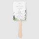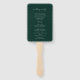 Wild Forest Foliage, Hochzeitsprogramm Handfan. Schwarz-Weiß Typografie mit der Koordination von Weiß- und Smaragdgrün Hintergrundfarben.