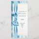 Traditionelle klassische schlicht helle pastellblaue Imitate Satinband und Vintager Skripthintergrund. Eine elegante, moderne, einfache und luxuriöse Ankündigung eines formellen Hochzeitsprogramms für die Hochzeitskirche, geeignet für moderne, Vintage oder traditionelle Hochzeiten. Kann leicht personalisiert werden mit den Namen von Braut und Bräuchen und anderen Brautgästen Text zu den Vorlagen, um Ihr eigenes luxuriöses berufliches Heiratsprogramm für Ihre besondere Anlässe und Festlichkeiten zu schaffen. Besuchen Sie den PERSONALISIERT_ WEDDINGS STORE , um die passenden Set der Hochzeitssuite zu finden.