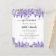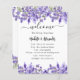 Weiß, elegant, mit Lavendelblumen und Blume geschmückt. Personalisieren und fügen Sie Ihre Namen und Ihre Hochzeitstag Zeitleiste. Sie können die Größe des Schriftartes und den Zeilenabstand verringern, wenn Sie mehr Text benötigen. Sie können auch Text auf der Rückseite hinzufügen.