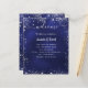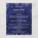 Ein klassisches Hochzeitsprogramm und ein Menü. Ein marineblauer Hintergrund. Die blaue Farbe ist ungleichmäßig. Weißer Text. Dekoriert mit Imitaten silbernen Glitzer, Glitzern. Personalisieren und hinzufügen Sie Ihren Namen, Datum und sowohl Ihr Programm als auch das Menü. 1 Blatt = 1 Menü, mit dem die Kante an Kante aufgedruckt ist.