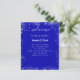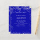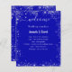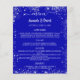 Ein klassisches Hochzeitsprogramm und ein Menü. Ein königlich blauer Hintergrund. Weißer Text. Dekoriert mit Imitaten silbernen Glitzer, Glitzern. Personalisieren und hinzufügen Sie Ihren Namen, Datum und sowohl Ihr Programm als auch das Menü. 1 Blatt = 1 Einladung mit Druckkante bis Kante.