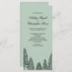 Dieses rustikale Hochzeitsprogramm mit Pinienbäumen auf grünem Hintergrund. Das Design ist ein hochwertiges Bild und druckt schön. Passen Sie Ihre Bestellung online an und sehen Sie sie, bevor Sie sie kaufen. Dieses Hochzeitsprogramm wurde von Victoria bei VG Invites entworfen.
