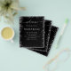 Bitte beachten Sie, dass diese Einladung auf Flyer Papier und sehr dünn ist. Für dickere Einladungen (gleiche Gestaltung) besuchen Sie bitte unseren Shop. Modernes schwarzes Ambiente mit Imitaten und silbernen Glitzern. Personalisieren und fügen Sie Ihre Namen und Ihre Hochzeitstag Zeitleiste. Weißer Text. Wenn Sie mehr Text haben, ist es möglich, den Zeilenabstand zu verringern. Sie können auch Text auf der Rückseite hinzufügen.