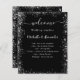 Modernes schwarzes Ambiente mit Imitaten und silbernen Glitzern. Personalisieren und fügen Sie Ihre Namen und Ihre Hochzeitstag Zeitleiste. Weißer Text. Wenn Sie mehr Text haben, ist es möglich, den Zeilenabstand zu verringern. Sie können auch Text auf der Rückseite hinzufügen. 1 Blatt = 1 Programm, mit der Kante bis Kante bedruckt.