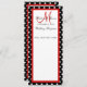 Hochzeitsprogramme weiße Polka Punkte auf schwarzem Hintergrund mit rotem Monogramm von Elke Clarke ©. Passen Sie Ihre Wünsche mit Ihren Hochzeitsmenüdetails, persönlichen Informationen und Hochzeitsfarben an.