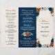Elegantes Navy Blau, Terracotta , Orange erthy floral Thema Hochzeit dreifaches Falten Programm mit elegantem Bouquet von Navy Blau, Terracotta Rose Peonies und grünen eucalyptus Blätter. Bitte kontaktieren Sie mich für Hilfe bei der Anpassung oder wenn Sie ein anderes Produkt mit diesem Design benötigen.