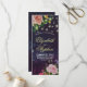 Hochzeitsprogramm Rackkarten Vorlagen - Elegantes Skript, Aquarellblütenrosa Rosen und String Lights auf Lila Sparkle Bokeh Licht Hintergrund. Ein perfektes Design für Ihren großen Tag! Alle Textstile, Farben, Größen können an Ihre Bedürfnisse angepasst werden.