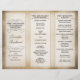 Hochzeitsfeier und Hochzeitsfeierprogramme mit Vintager typografischer Gestaltung, Altpapierhintergrund.