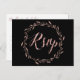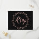 RSVP Hochzeitkarten mit Rose-Goldfolie-Effekt Blumenkranz und Sondertext, auf schwarzem Hintergrund gedruckt