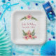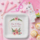 Hochzeitsrahmen auf weißem Hibiskus Pappteller