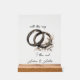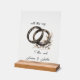 Ein Set von Hochzeitsringen für Braut und Bräutigam, umgeben von einem Blumendesign. Text ist die Braut- und Bräutigam-Namen, und "mit diesem Ring, ich habe gezeichnet".