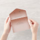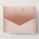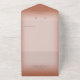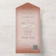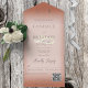 MIT ODER OHNE QR-CODE ZUM AUSSCHLIESSEN. Dieses schlichte und dennoch elegante Design mit zwei vergoldeten Hochzeitsringen auf einem weichen, weißen, verwinkelten Overlay auf einem weichen Lehmrosthintergrund. Personalisierte All-In-One-Einladungen sind eine einzigartige Kombination aus einer schön gedruckten, maßgeschneiderten Einladung und einer leicht zu abreißenden perforierten UAWG-Postkarte. Und sie sind so einfach zu bedienen! Man falte einfach, dann Siegel die Rückklappe mit den drei beiliegenden Klarkleben, und Post. Und wenn Ihre Gäste Ihre persönliche Einladung erhalten, reißen sie einfach die perforierte RSVP Karte ab und lassen sie in der Mail an Sie zurück!