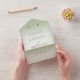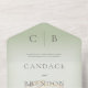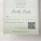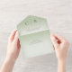 MIT ODER OHNE QR-CODE ZUM AUSSCHLIESSEN. Dieses schlichte und dennoch elegante Design hat einen modernen Look. Zwei vergoldete Hochzeitsringe auf einem weichen, weißen, blurfarbenen Overlay auf einem sanften, hellgrünen Hintergrund. Personalisierte All-In-One-Einladungen sind eine einzigartige Kombination aus einer schön gedruckten, maßgeschneiderten Einladung und einer leicht zu abreißenden perforierten UAWG-Postkarte. Und sie sind so einfach zu bedienen! Man falte einfach, dann Siegel die Rückklappe mit den drei beiliegenden Klarkleben, und Post. Und wenn Ihre Gäste Ihre persönliche Einladung erhalten, reißen sie einfach die perforierte RSVP Karte ab und lassen sie in der Mail an Sie zurück!