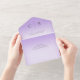 MIT ODER OHNE QR-CODE ZUM AUSSCHLIESSEN. Dieses schlichte und dennoch elegante Design hat einen modernen Look. Zwei vergoldete Hochzeitsringe auf einem weichen, weißen WeichblurOverlay auf einem weichen Lavendelhintergrund. Personalisierte All-In-One-Einladungen sind eine einzigartige Kombination aus einer schön gedruckten, maßgeschneiderten Einladung und einer leicht zu abreißenden perforierten UAWG-Postkarte. Und sie sind so einfach zu bedienen! Man falte einfach, dann Siegel die Rückklappe mit den drei beiliegenden Klarkleben, und Post. Und wenn Ihre Gäste Ihre persönliche Einladung erhalten, reißen sie einfach die perforierte RSVP Karte ab und lassen sie in der Mail an Sie zurück!
