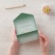 Dieses schlichte und dennoch elegante Design hat einen modernen Look, mit zwei vergoldeten Hochzeitsringen auf einem weichen, weißen, verwinkelten Overlay auf einem piniengrünen Hintergrund. Personalisierte All-In-One-Einladungen sind eine einzigartige Kombination aus einer schön gedruckten, maßgeschneiderten Einladung und einer leicht zu abreißenden perforierten UAWG-Postkarte. Und sie sind so einfach zu bedienen! Man falte einfach, dann Siegel die Rückklappe mit den drei beiliegenden Klarkleben, und Post. Und wenn Ihre Gäste Ihre persönliche Einladung erhalten, reißen sie einfach die perforierte RSVP Karte ab und lassen sie in der Mail an Sie zurück!