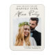 Eleganter heller Ankündigung Datum freihalten Magnet für Ihre Nachbearbeitung oder kleine Hochzeitsfeier mit Ihrem Hochzeitstag Foto "Save the Date für unser glückliches Ever After Party" in einfacher Typografie und einem modernen Drehbuch, Ihren Vornamen, Empfang Datum und Ort.