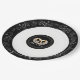 Diese Teller sind hervorragend geeignet, um Spaß beim nächsten Hochzeitsfest oder Jubiläumsfest zu haben (und auch leicht aufzuräumen). Vorformatierter Text [den Sie ändern können] hat Platz für Ihre beiden Namen. Hier sehen Sie einen weißen inneren Rand und einen doppelten Ehering-Druck in der Mitte über schicken schwarzen Hintergrund. Doppelfarbige, silbergraue Ränder an der schwarzen Außengrenze und am inneren Bereich um die Hochzeitsringe bedruckt. Personalisiere!