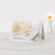 Weiße Rosen und Hochzeitsringe auf der Heiligen Bibel für Neuvermählte mit individuellem Namen.