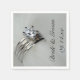 Das hübsche Hochzeitspapier Napkins kann mit den Namen der Braut und des Bräutigams und dem Veranstaltungsdatum personalisiert werden, um bei Ihrer hochklassigen Verlobungsfeier, dem Brautparty Mittag- oder Ehe-Empfang-Cocktail-Stunden zu nutzen. Diese eleganten Einweg-Servietten verfügen über ein nahes Foto eines Diamant-Verlobung-Ringes und einer Hochzeitskapelle mit weißem Tüll.