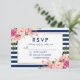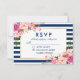 Blumenfarben Rosa blaue Streifen Hochzeitsrampe RSVP-Karte - Blaue Rückseite