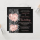 Hochzeitsrot Peach Charcoal Floral Black Einladung