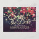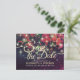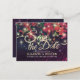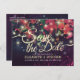 Save the Date Einladung Postcard Vorlagen Hochzeit - Burgundy Marsala Red Watercolor Floral mit String Lights und Imitate Gold Foil Script auf Lila Sparkle Bokeh Licht Hintergrund. Ein perfektes Design für Ihren großen Tag! Alle Textstile, Farben, Größen können an Ihre Bedürfnisse angepasst werden.
