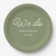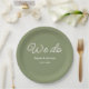 Sage Green Wedding Paper Teller mit weißem Text. Bitte Karo unten unsere Kollektion für passende Artikel aus.