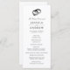Unser elegantes Schwarz-Weiß-Hochzeitsprogramm zeigt Ihre Zeremonie-Details in elegantem Schriftsatz und unterstreicht den handgezeichneten Stil der Illustration einer verstrichenen Hochzeitsband und eines Diamanten-Verlobung-Ringes. Auf der Rückseite finden Sie die Mitglieder Ihrer Hochzeitsfeier mit leicht bearbeitbaren Textfeldern, überragt von einer winzigen Bouquet-Illustration. Verwenden Sie die Vorlagenfelder, um Ihre Zeremonie- und Brautparty-Informationen hinzuzufügen, und klicken Sie dann auf "Anpassen", um Elemente bei Bedarf neu zu positionieren.