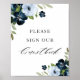bemalt Aquarell Marine und hellblaue Blumen und schwarze Schrift. Der Text und die Farben auf diesem Hochzeitsschild Poster können bearbeitet werden.