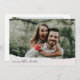Lass deine Liebe mit dieser wunderschön simplen Save the Date Karte. Mit einem kompletten Foto-Layout und einem realistischen Papiereffekt und einer zarten, handgeschriebenen Schrift ist dieses Design ideal für Paare, die eine moderne und romantische Touch gewollt haben. Der sanfte, ästhetische und minimalistische Stil eignet sich gut für Hochzeiten in jeder Jahreszeit, insbesondere bei Feiern im Freien, in der Rustik oder im lässigen Stil. Personalisieren Sie Ihre Lieblings-Foto und Ihren eigenen Text, um es wirklich zu Ihrem.