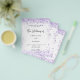 Bitte beachten Sie, dass diese Einladung auf Flyer Papier und sehr dünn ist. Umschläge sind nicht enthalten. Für dickere Einladungen (gleiche Gestaltung) besuchen Sie bitte unseren Shop. Ein stilvoller weißer Hintergrund. Mit violetten, lavenfarbenen Imitaten dekoriert, Glitzer Staub. Personalisieren Sie Ihre Namen und Details und fügen Sie diese hinzu.