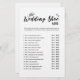 Ein modernes und minimalistisches Spiel The Wedding Shoe in Schwarz und Weiß. Das Hochzeitsschuhspiel ist eine lustige Art, mehr über Braut und Bräutigam zu erfahren und herauszufinden, wie gut sie sich kennen. Das Paar sitzt zurück, um die Fragen zu beantworten, indem es seinen Schuh hochhält, während die Gäste versuchen, ihre Antworten auf den Spielkarten zu erraten. Dieses Spiel ist eine lustige Aktivität für ein Brautparty, eine Verlobungsfeier, einen Junggeselinnen-Abschied oder eine Hochzeitsfeier und eine gute Möglichkeit, das Eis zwischen den Gästen zu brechen.