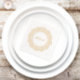 Hochzeitsserviette mit goldener Monogramm und Siegel im Retro-Stil.