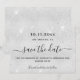 Ein modernes und elegantes Save the Date für eine Hochzeit. Ein Imitat silberer Hintergrund mit Imitat Glitzer. Glitzern. Personalisieren und fügen Sie ein Datum und Namen hinzu. Der Text: Save the Date ist mit einem großen angesagten, handgeschriebenen Stilskript geschrieben.