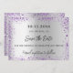 Ein modernes und elegantes Save the Date für eine Hochzeit. Ein Imitat silber aussehender Hintergrund, dekoriert violett, lavendelfarbener Imitat Glitzer. Personalisieren und fügen Sie ein Datum und Namen hinzu. Der Text: Save the Date ist mit einem großen angesagten, handgeschriebenen Stilskript geschrieben.