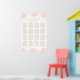Das elegante Poster-Design der Pony-Hochzeitsstühle beinhaltet ein Monogramm der Braut- und Bräutigam-Namen und das Hochzeitsdatum, einen individuellen Vorlagentext für Tischnummern und Gästebamen sowie auch die von Hand gezeichnet bzw. skizzierten Bühnen. Die Farben sind korallenrosa Blumenbäume, Elfenbeinhintergrund und Goldtext.